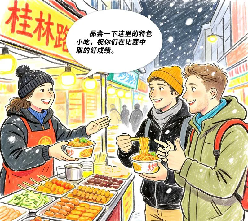 長春の強みの一つは、多様で豊かな文化リソースを有することだ。映画の要素を取り入れた交流イベントを企画し、外国人を長春映画旧跡博物館に案内して、光と映像の中に息づく中国映画の物語を理解してもらう。一汽紅旗文化展示館を公開し、民族自動車ブランドの発展の軌跡から、ここの工業の深みを感じてもらう。ボランティアが外国人選手を桂林路の夜市や新民大街、ここ有山などに案内して、本場の吉林料理を味わってもらう。文化交流が街角の日常に溶け込むとき、都市の物語は最も自然な形で広がり、人々の心に届く。